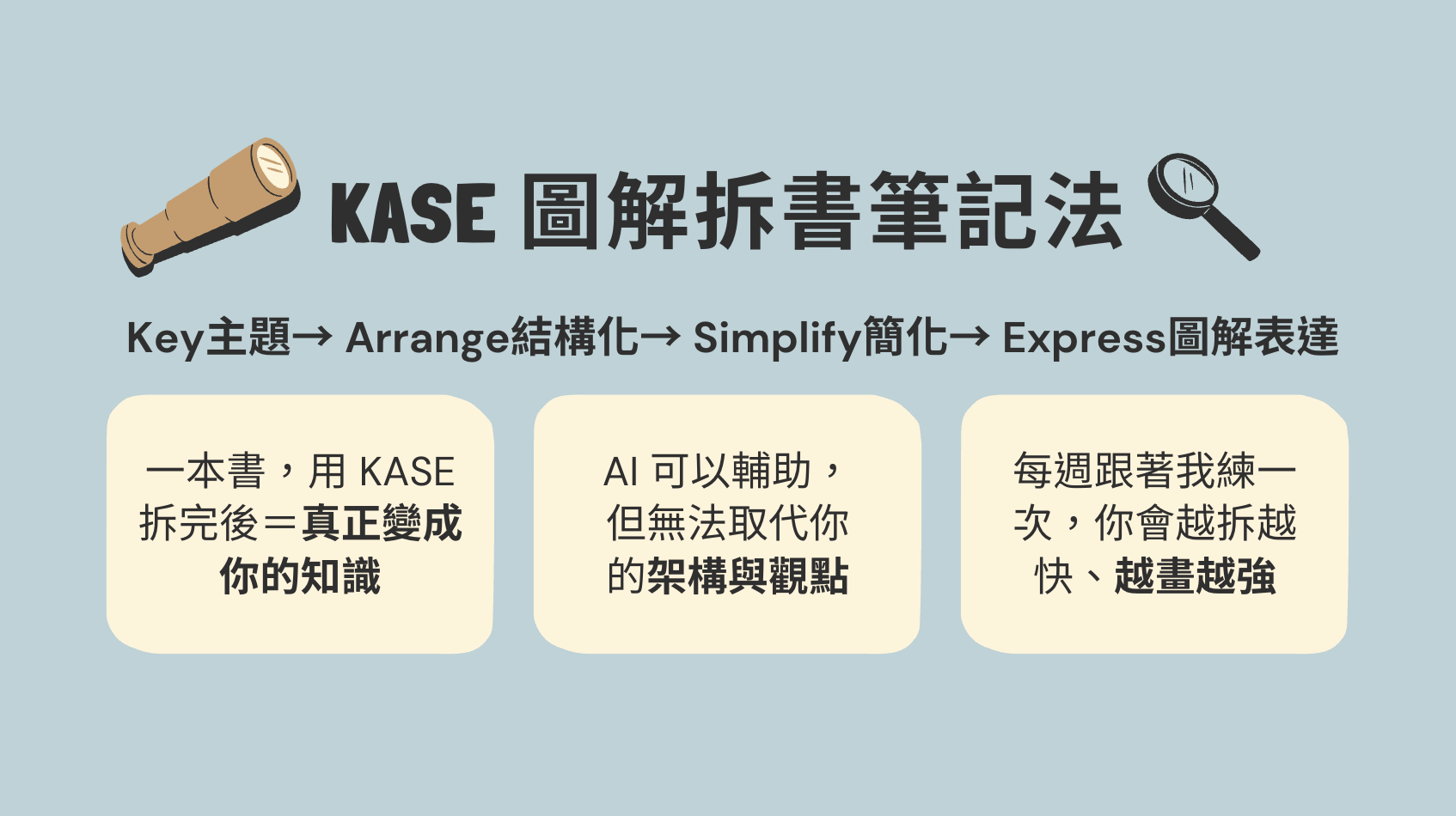 ✔ 一本書,用 KASE 拆完後=真正變成你的知識