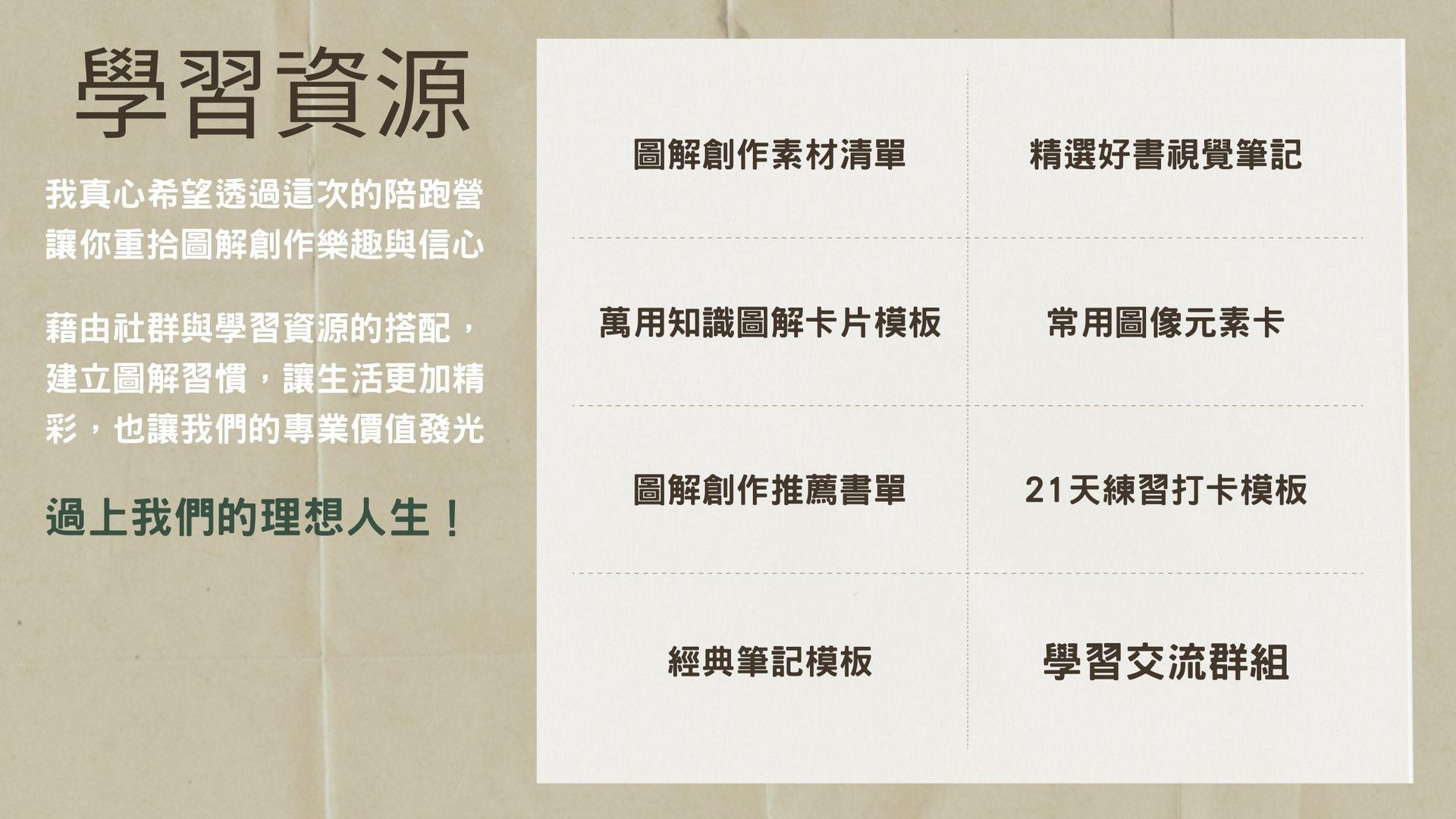 當一堆人都在寫閱讀心得,你和別人有何差別?光是圖解形式就快速與文字建立區格外,課程中也將分享有哪些專屬元素,幫你建立專屬標籤.