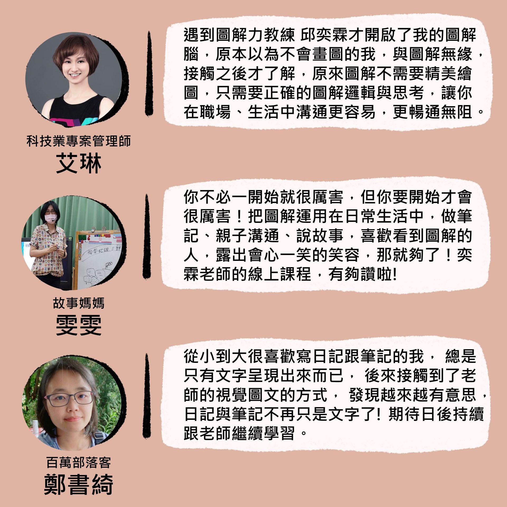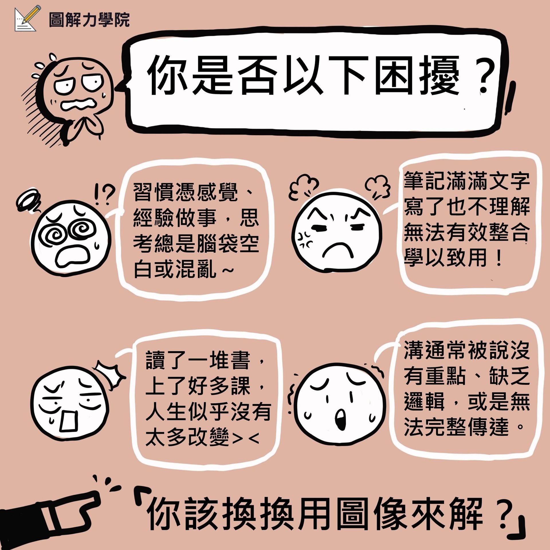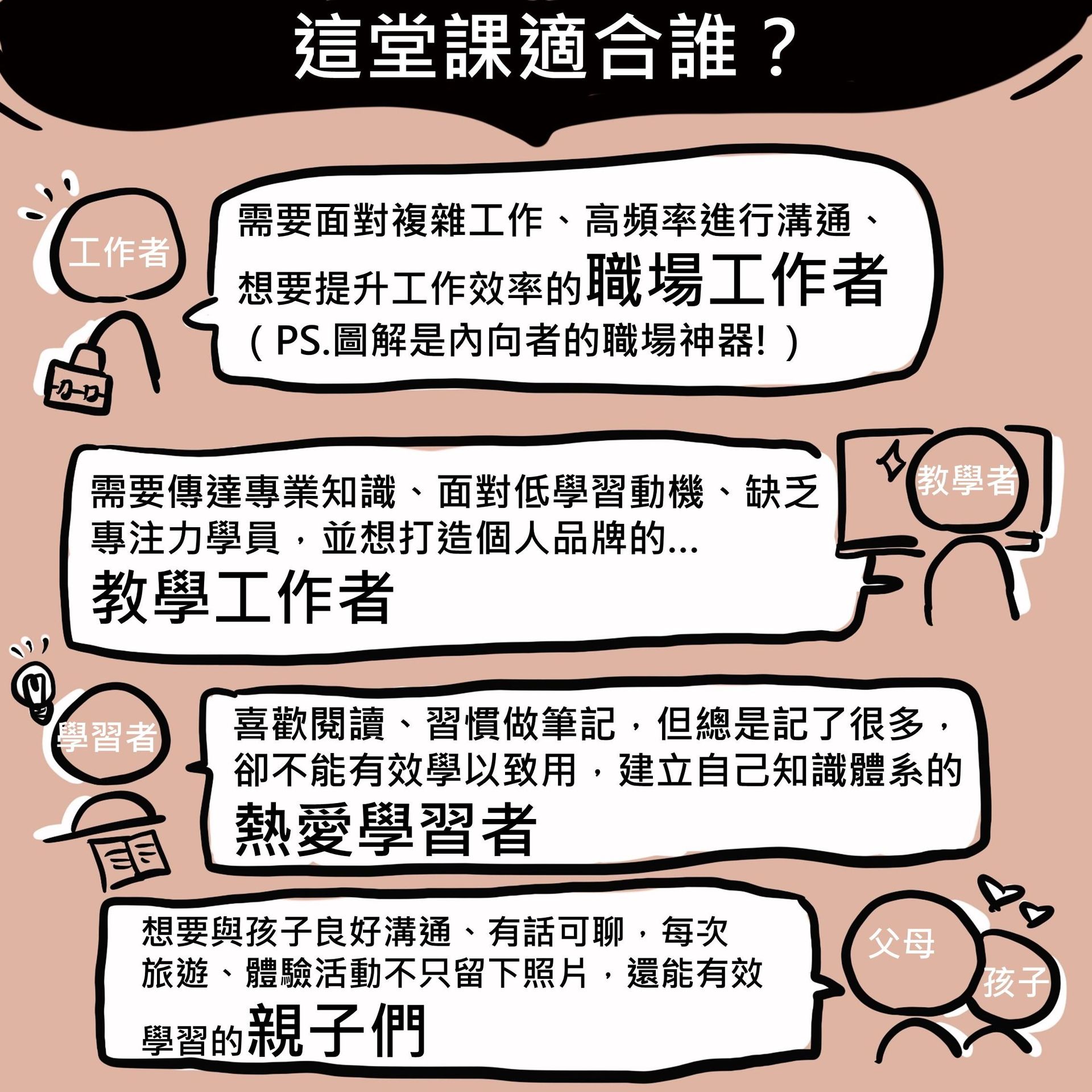 課程內容包含: 1.30堂單元錄製課程 2.12場主題直播 3.學習交流群組,QA解答 4.線上版AI圖解力教練 4.獨家「圖解筆記」實體卡牌