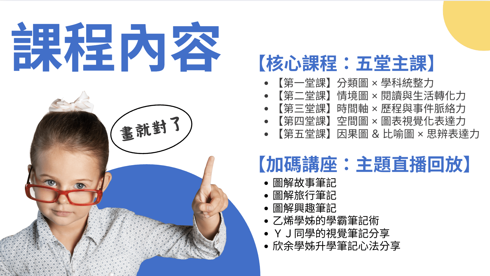 包括學霸筆記術、故事筆記、旅行筆記、興趣筆記、學員實例與升學分享,補強動機與實用情境!