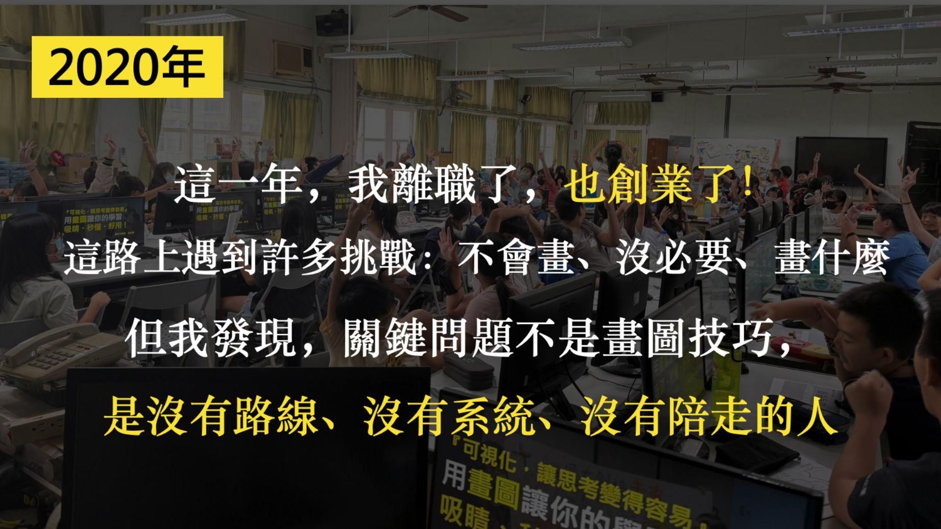 2019年從國外取經回來滿腔熱血,2020正式創業後卻面臨到現實的狠狠打臉,畢竟當時台灣認識視覺紀錄、圖解的人並不多(現在好多了,但還是有很長的路要走),所以無論是學校還是企業單位,常常質疑