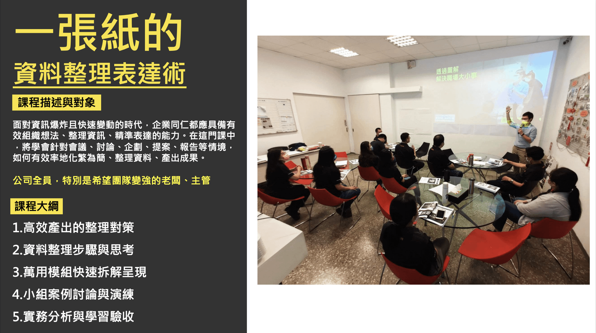 在資訊爆炸且變動快速的時代,企業同仁需要具備「高效整理資訊」與「精準表達重點」的能力。