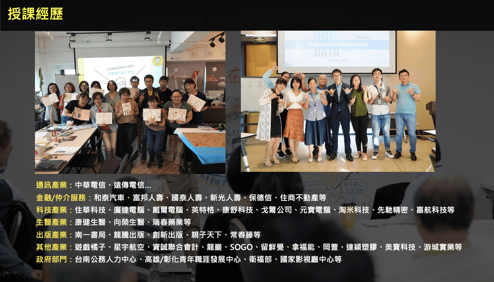 以上皆含電子講義教材,可依企業需求客製化時數與內容(專案報價可另行討論)