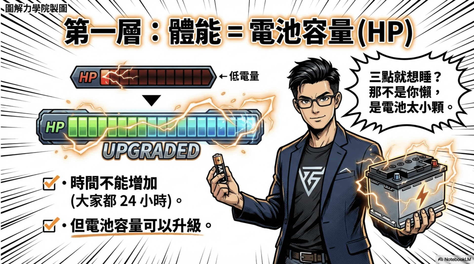 我把體能想成最底層的「電池發電」。