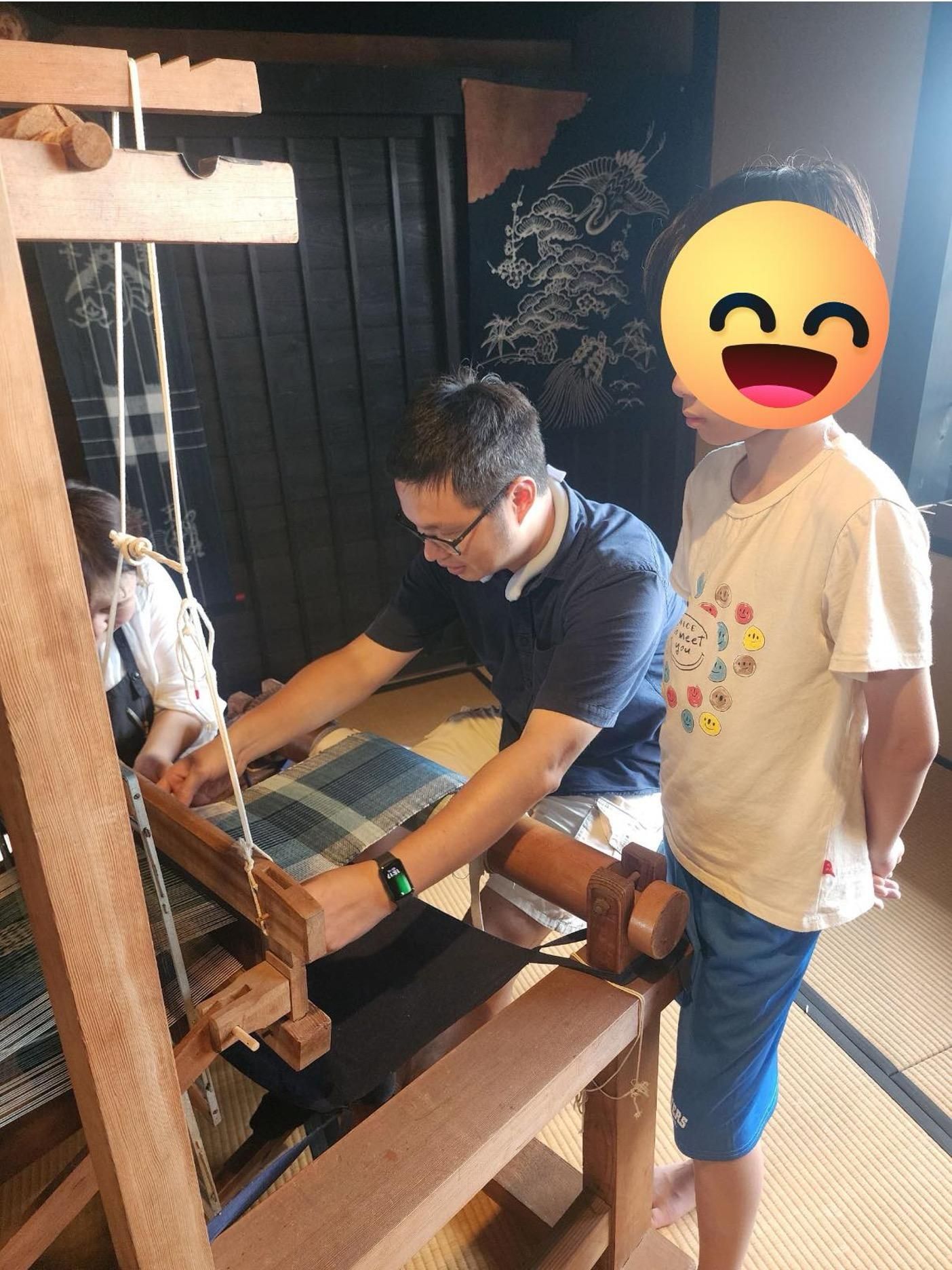 在日本的一家小店,我們報名了織布體驗。老實說,對織布我完全沒有天分,手忙腳亂地拉線、壓梭,總覺得自己動作慢半拍。