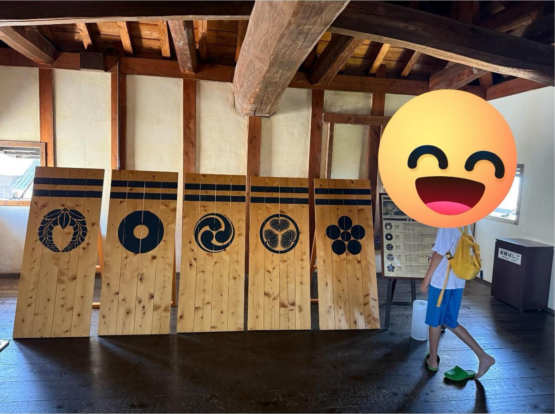 有一天,我們參觀了一座日本城堡。除了壯麗的石牆,我注意到城內的展示牆上,排列著不同家族的家徽。那些圖案,有的像花、有的像箭、有的像動物,每一個背後都有故事。