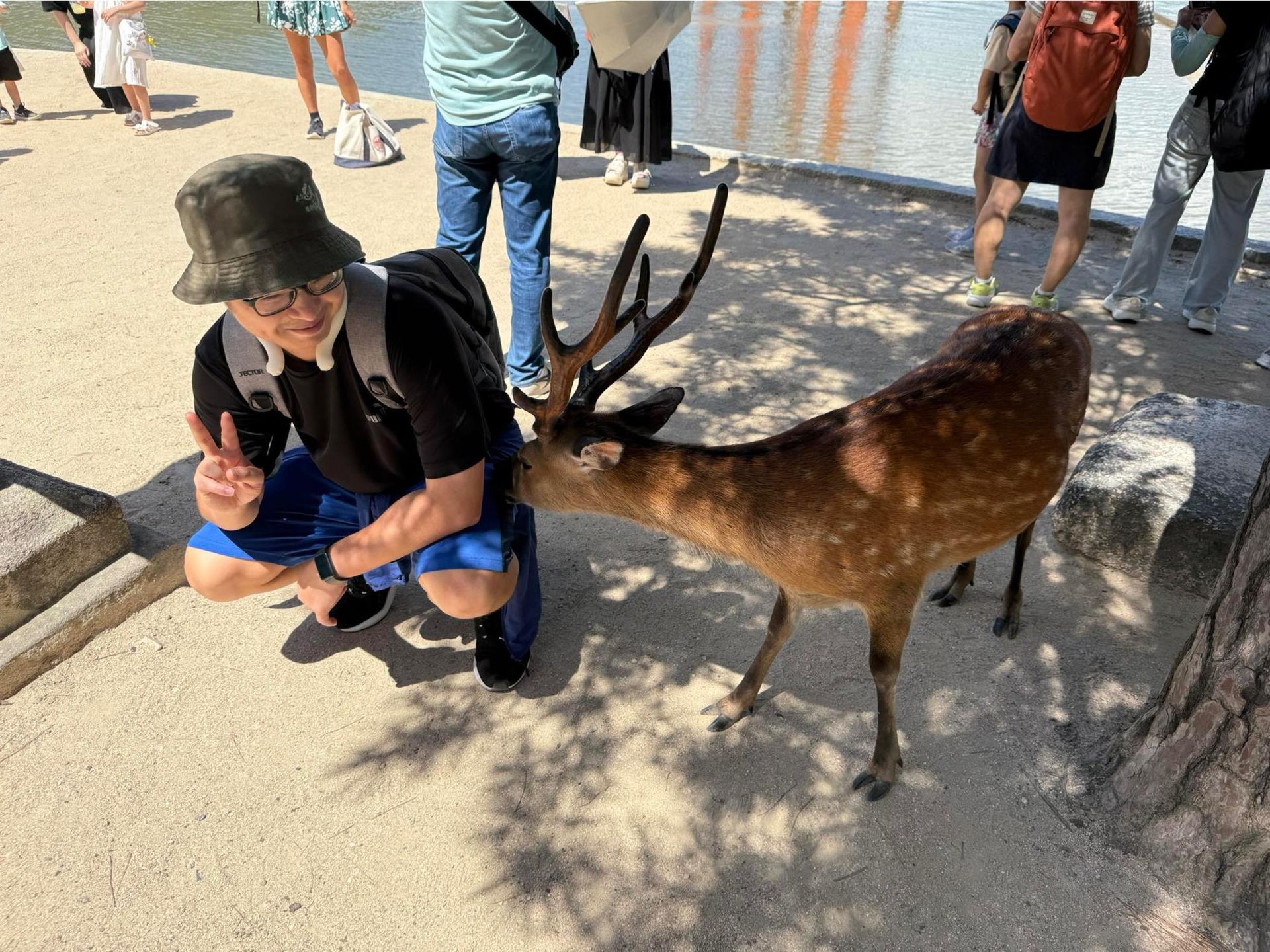 其中一站,我來到了廣島縣的嚴島神社。那天退潮,海面露出大片濕潤的沙地,海上鳥居靜靜立在那裡,像一位守護島嶼的長者,等著每位到訪的旅人走近。同行的家人忙著拍照、欣賞梅花鹿,而我的腦袋卻開始運轉——為什麼這個地方的觀光印象如此清晰?