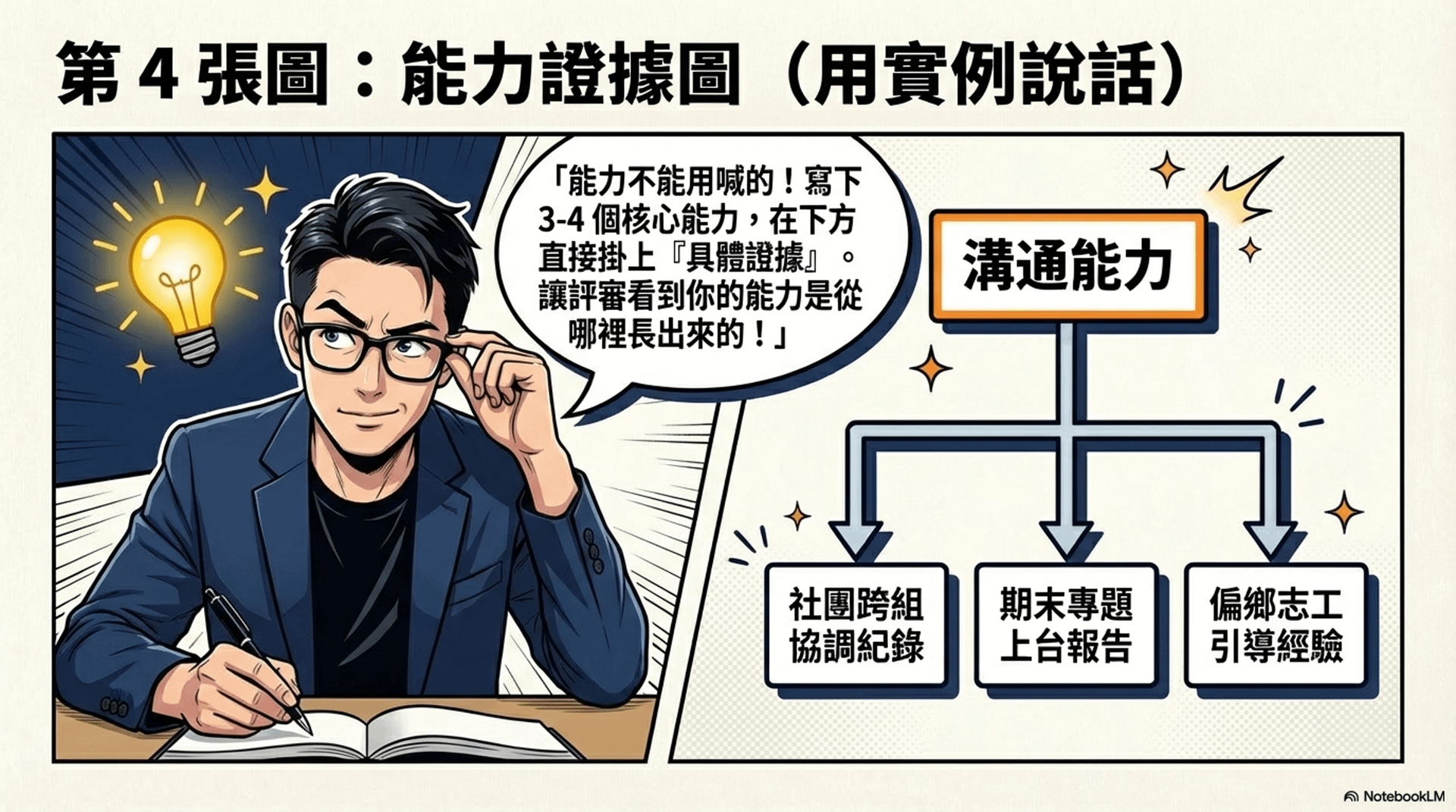 當能力與經歷被放在同一張圖裡時,評審就能很快理解:你的能力是從哪些事情長出來的。