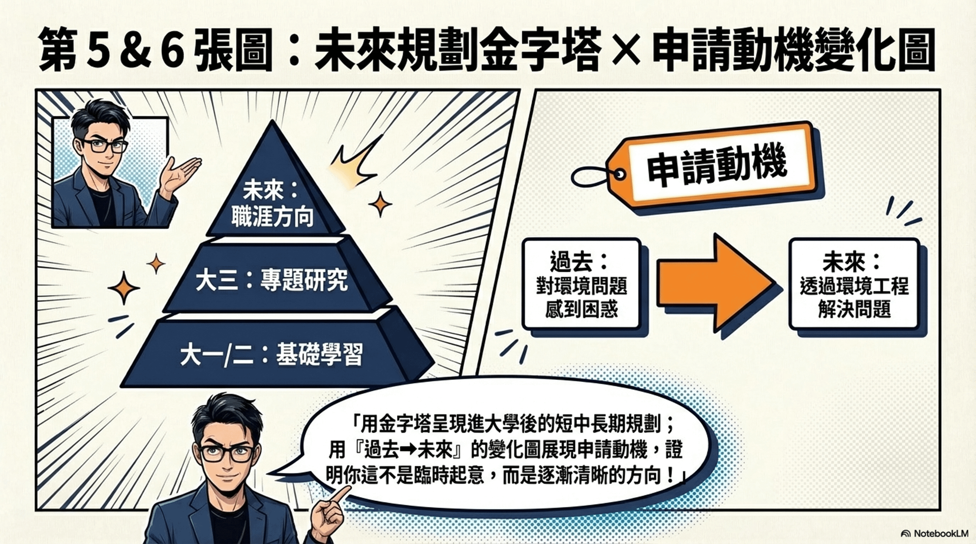 如果你正在準備申請大學,或是正在幫孩子整理備審資料,不妨試試看先用這六張圖把整體想清楚,再開始寫內容。